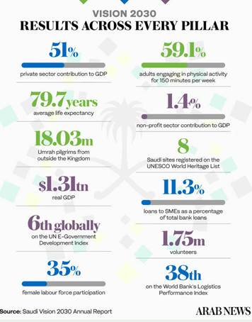 在国际上,沙特阿拉伯在全球各项指标中的地位得到了加强,在网络安全方面排名世界第一,在全球人工智能指数中排名第三,同时在竞争力和数字化准备方面也取得了进步。